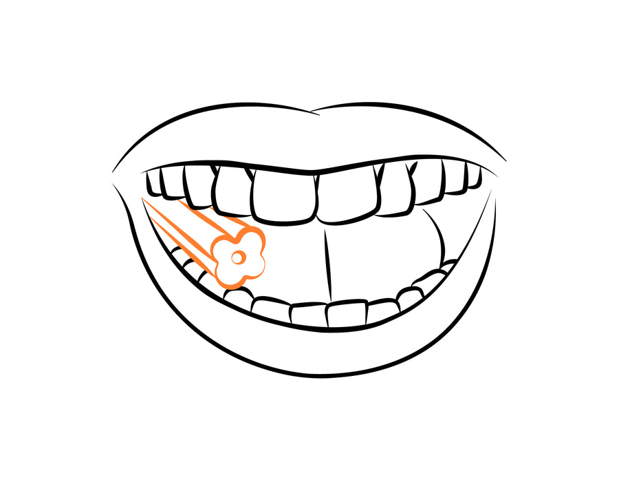 The removal tool has two unique ends and functions. The curved end of the removal tool is designed to safely assist with the removal of aligners while the smooth end of the removal tool can be used to hold an OrthoChew in place in the mouth.