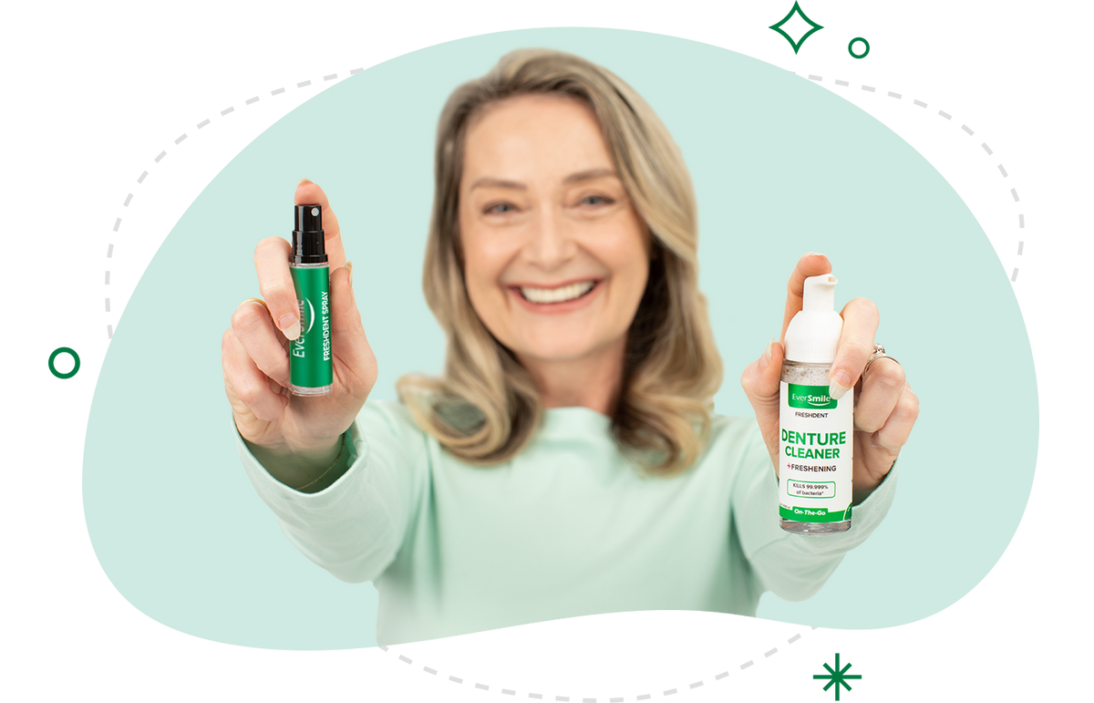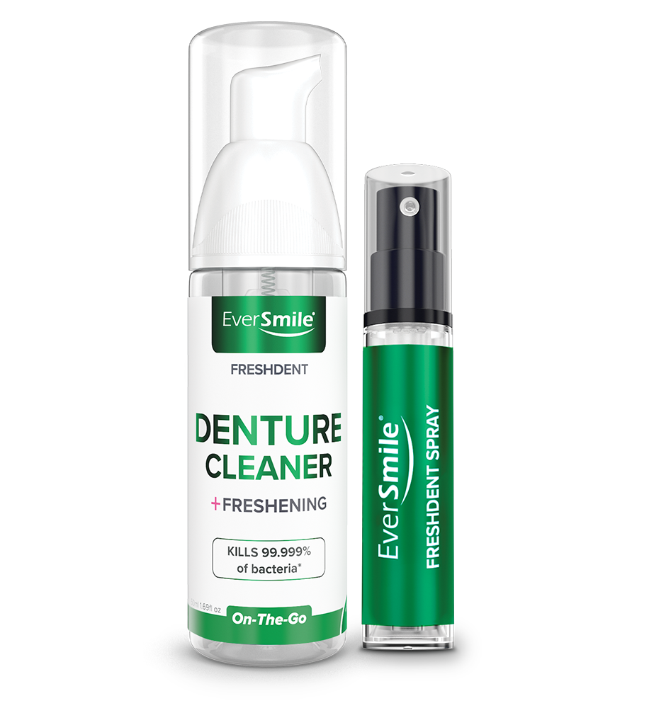 FreshDent was developed as a better way for people with dentures to keep them bright, and bacteria-free. FreshDent also has oral health benefits other cleaners don’t. Whether you spray or foam each application helps to kill bacteria, freshen breath, and brighten your dentures.